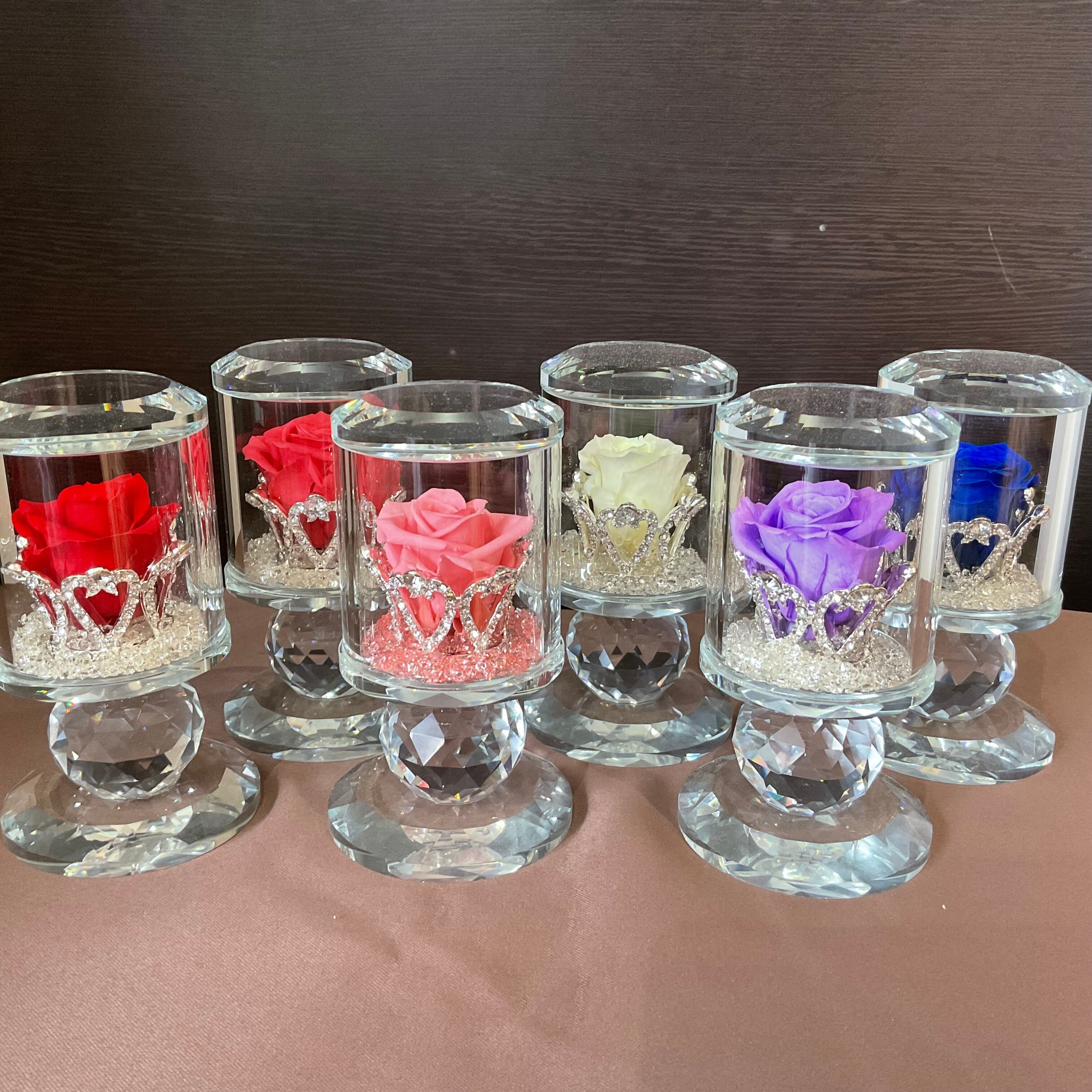 「プリザーブドフラワー クリスタルティアラ(クラシックラベンダー)」は、特別な瞬間を美しく飾るアイテムです。透明感あふれるクリスタルで作られたこのプリザーブドフラワーは、華やかなクラシックラベンダーが生き生きとした雰囲気を演出します。
