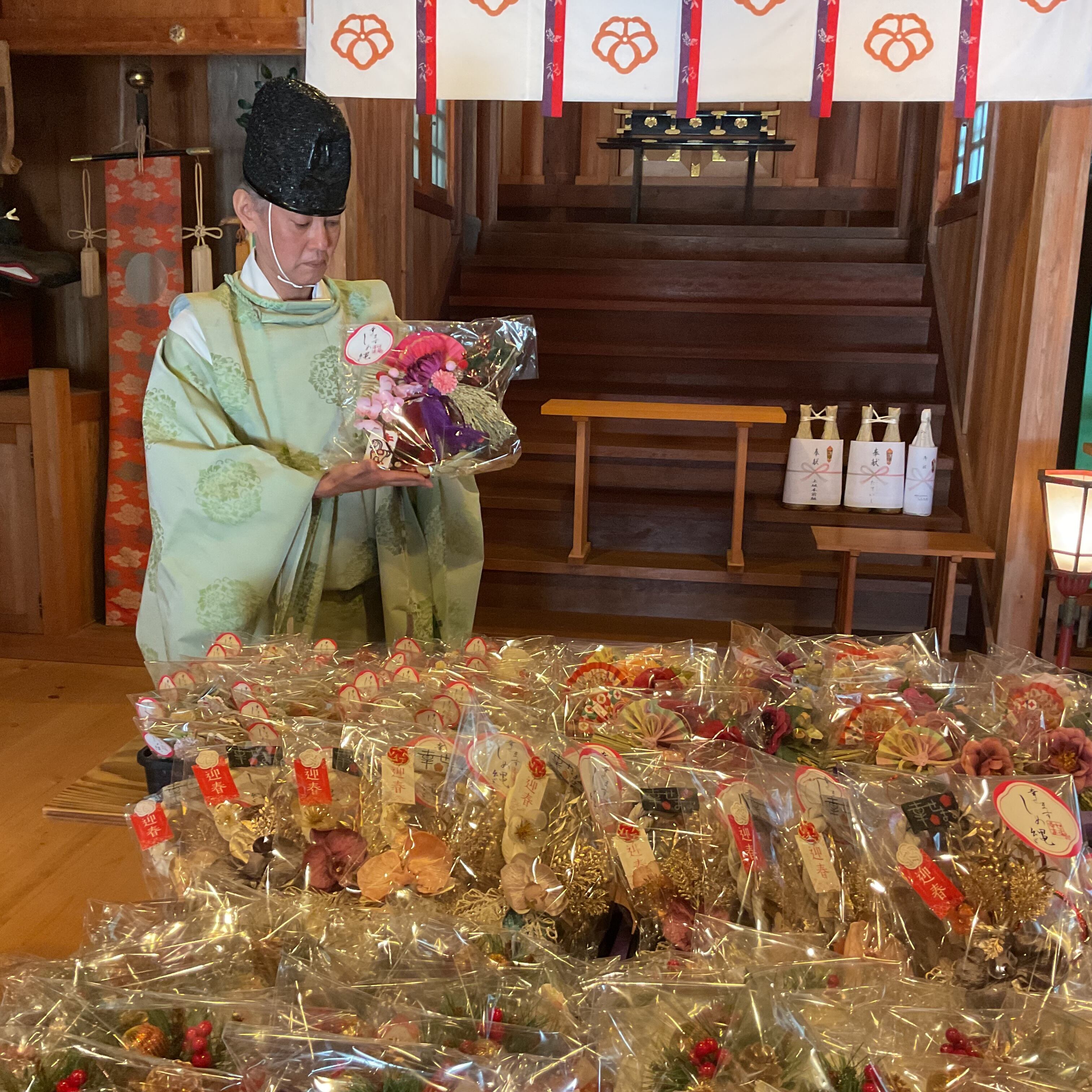 小さいながらも昔ながらの藁を使ったしめ縄に、可愛くデザインしてみました。