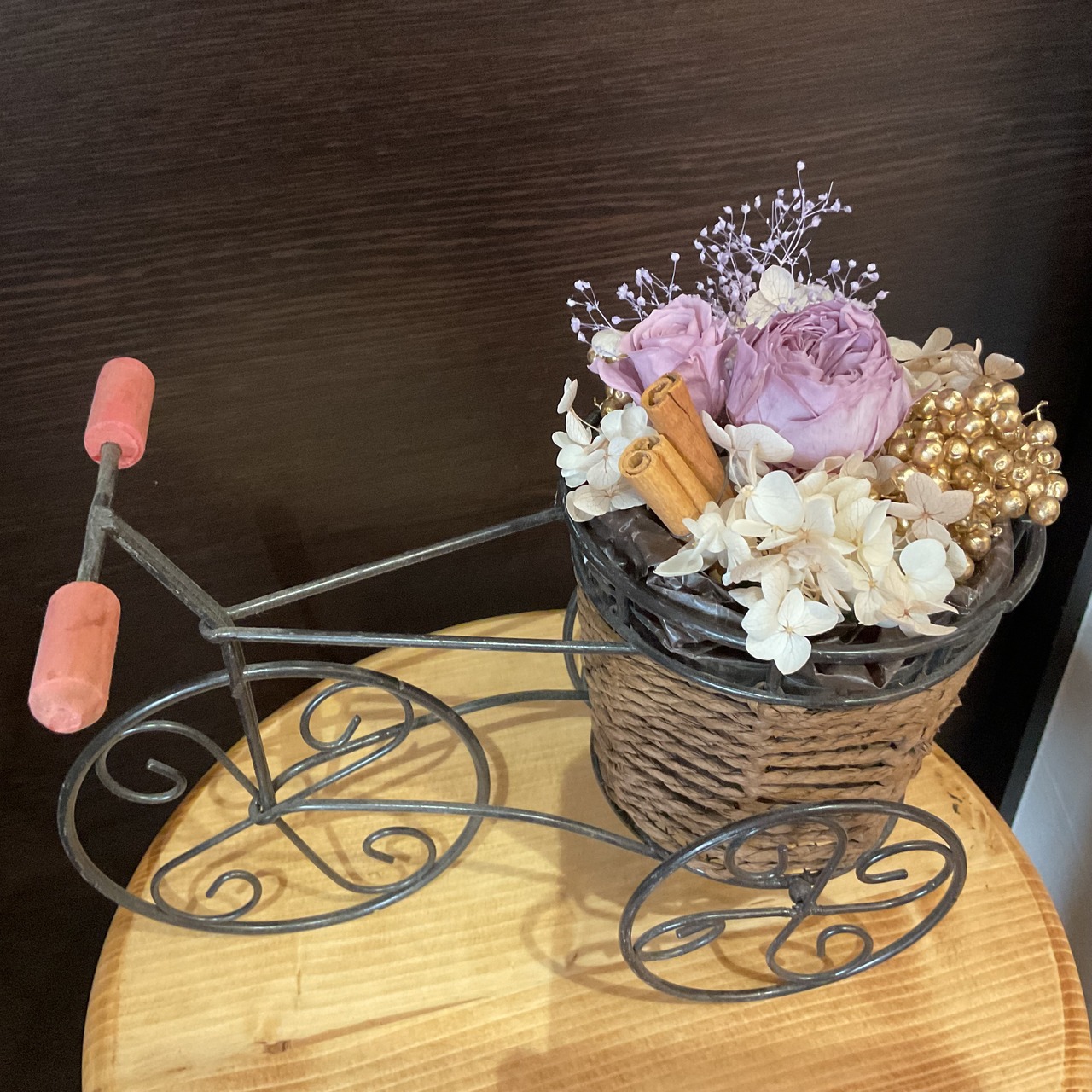 ゴールドラベンダーの自転車アレンジメントが、あなたの空間を優雅に演出し、幸せな気持ちを届けることを願っています。