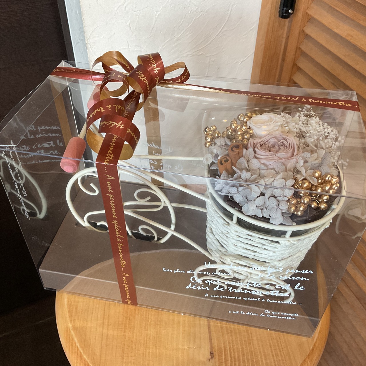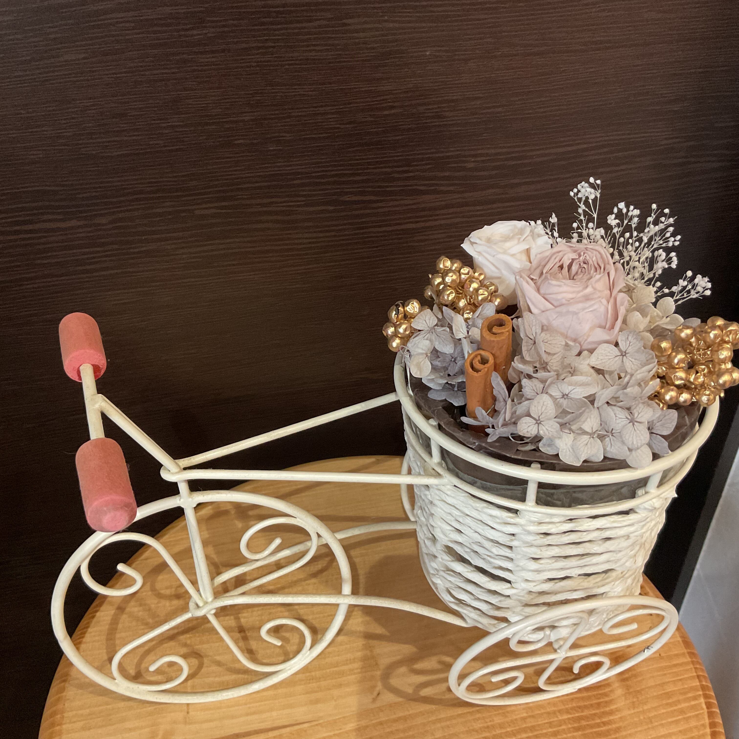 ホワイトグレイッシュの自転車アレンジメントが、あなたの空間を優雅に演出し、幸せな気持ちを届けることを願っています。