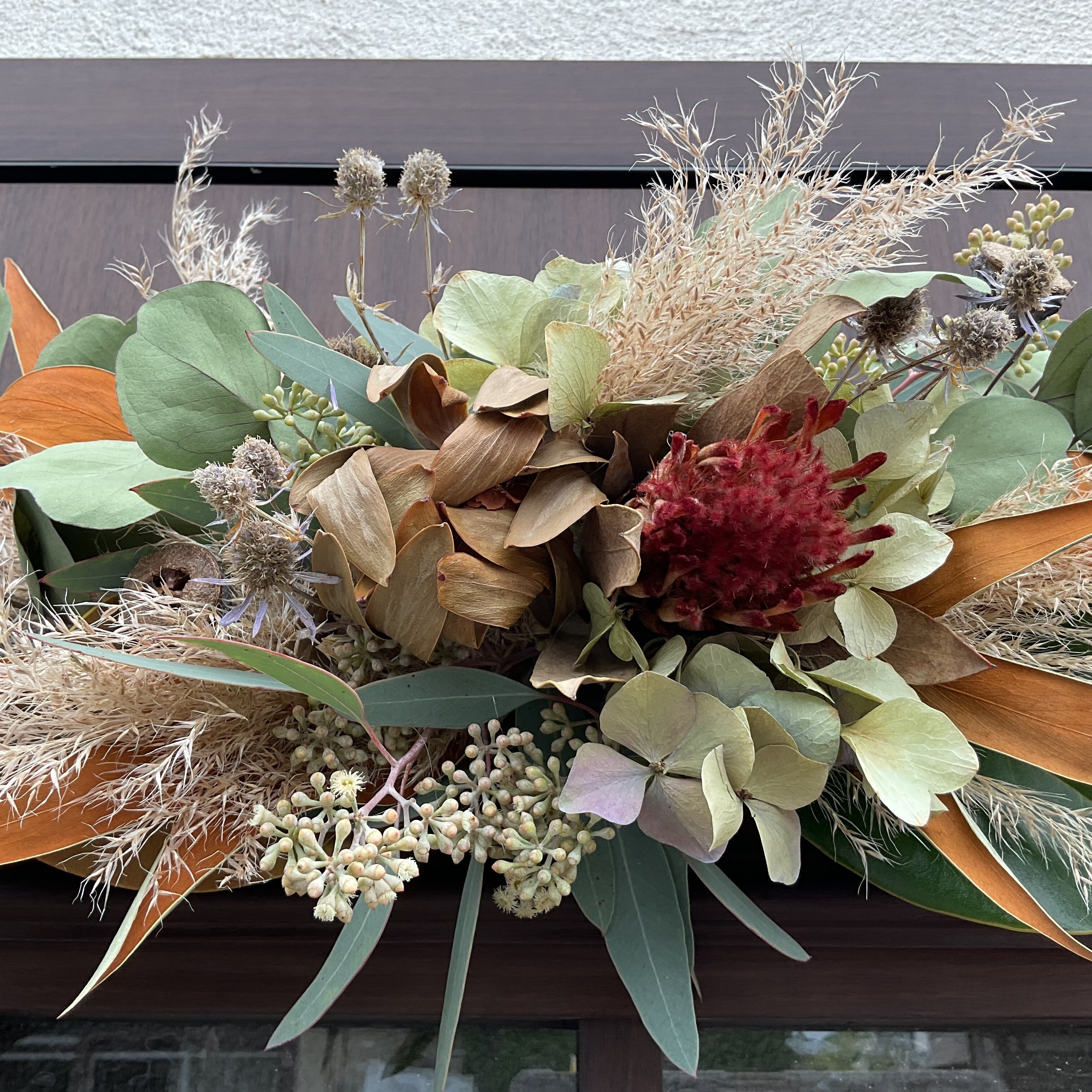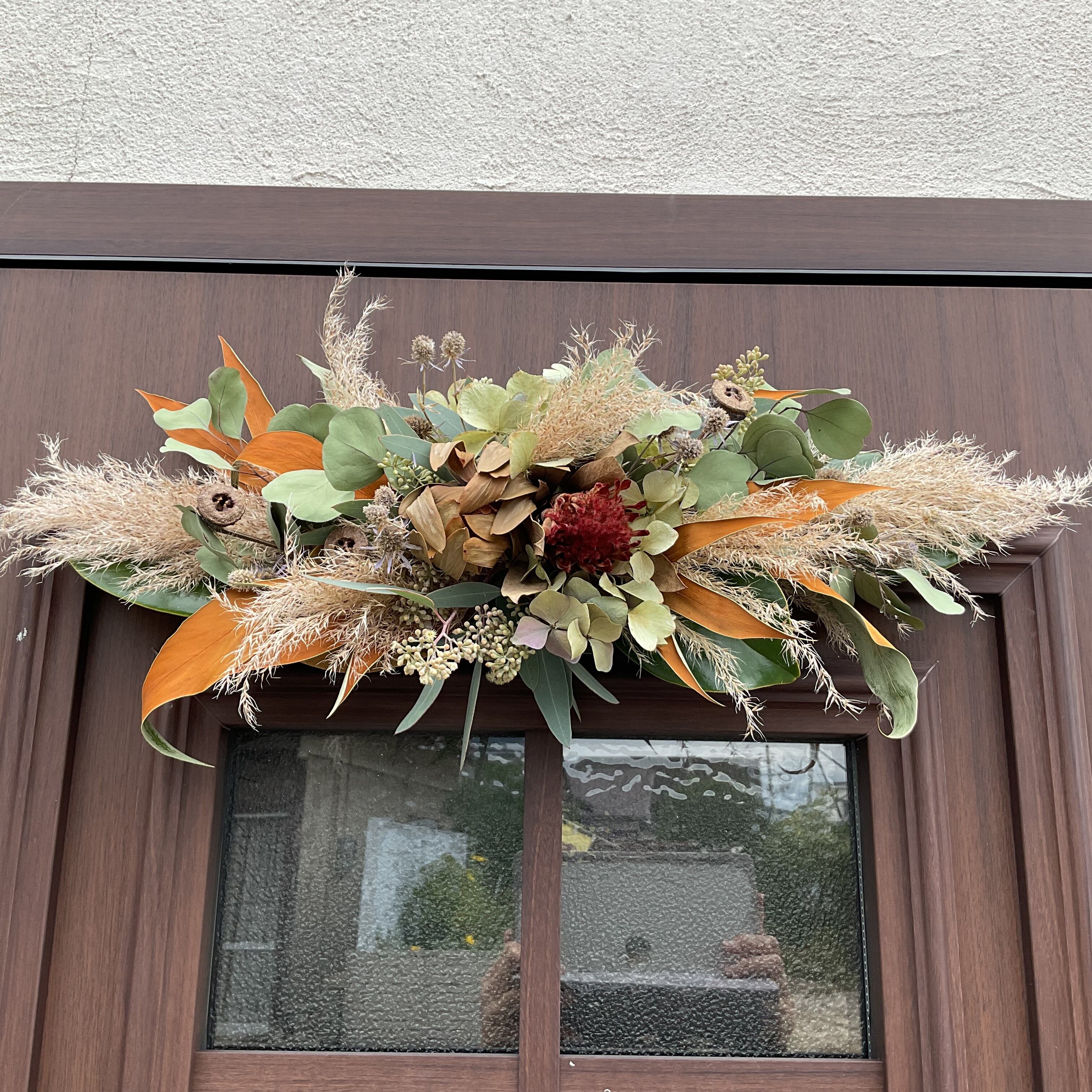 この壁掛けスワッグは、玄関やリビングだけでなく、オフィススペースにもぴったりです。どんな場所でもナチュラルな雰囲気を醸し出し、訪れる人々の心を和ませます。心地良い自然のエッセンスを感じながら過ごす毎日をサポートします。