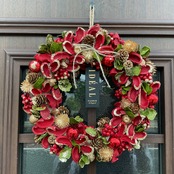 玄関、リビング、さらにはクリスマスのディスプレイとしても大活躍するこのリースは、訪れる人々に温かみを感じさせ、心地よい印象を与えることでしょう。お部屋に一つあるだけで、日常を特別なひとときに変えてくれます。ナチュラルな素材感とクリスマスの色合いを楽しみながら、素敵な空間作りに挑戦してみてはいかがでしょうか?