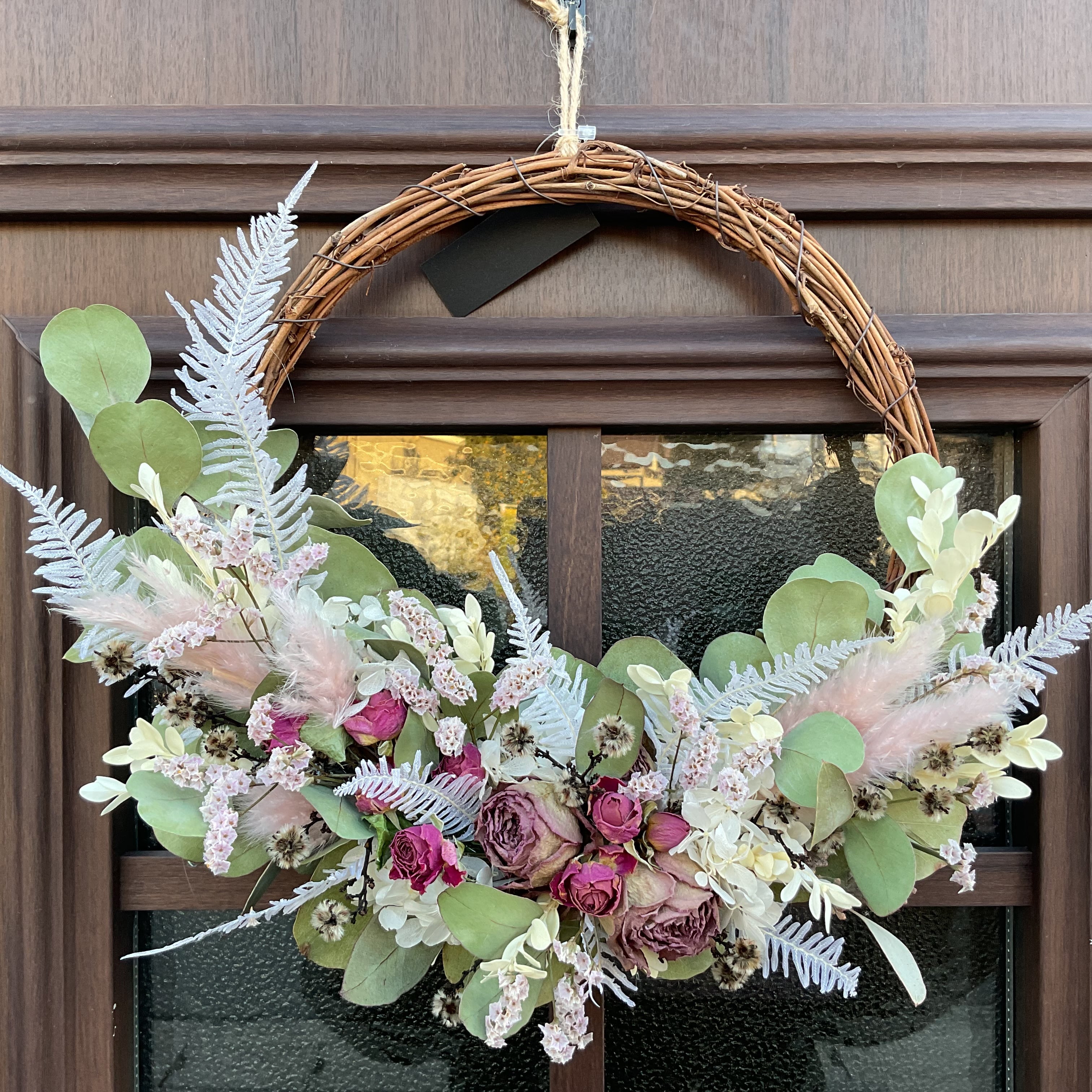 「ドライフラワー ナチュラルリース(アンティークピンク)」は、ナチュラルな美しさが魅力のインテリアアイテムです。このリースには、厳選されたドライフラワーが使用されており、上品で温もりのあるアンティークピンクが特徴です。